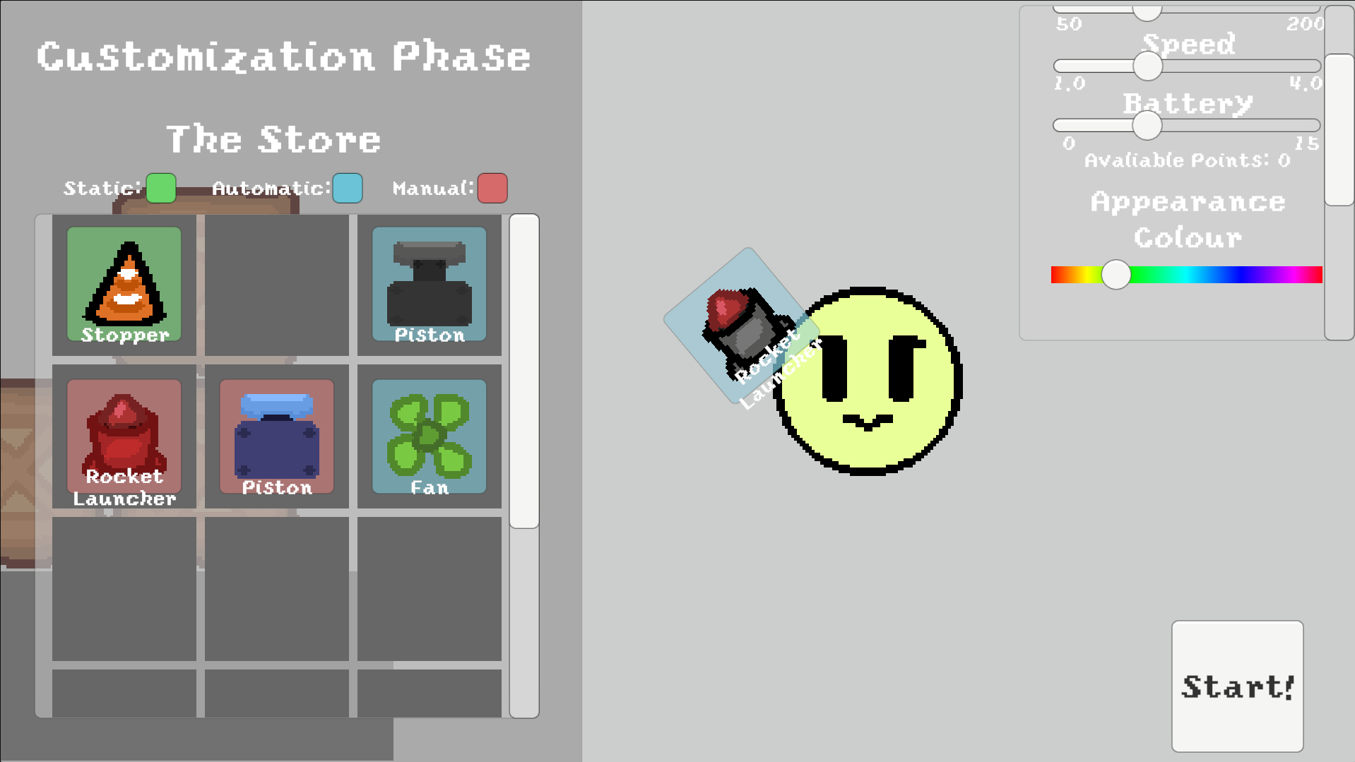 Green bar: Health bar(Currently player only take damage from rocket launcher misfire)